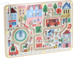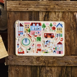 Il labirinto magnetico supporta l'immaginazione e il pensiero creativo dei bambini attraverso la conduzione di biglie attraverso la città.