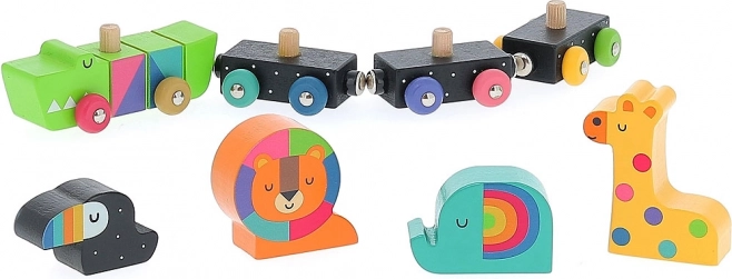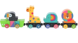Intraprendi un percorso creativo con i tuoi bambini con il trenino colorato degli animali del rinomato illustratore Andy Westface. Questo set unico in legno include blocchi di diverse dimensioni, forme e colori vibranti. La locomotiva e i vagoni, raffiguranti animali come il coccodrillo, il leone, l'elefante e la giraffa, sono ingegnosamente collegati tramite magneti. I bambini non solo si divertiranno assemblando, ma anche scoprendo gli animali.