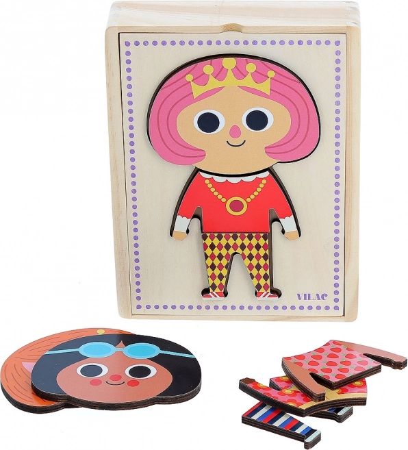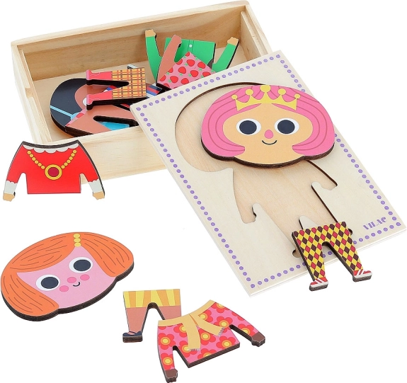 Questo puzzle vestire in legno offre ai bambini la possibilità di vestire con stile il personaggio Jade. Con 6 diversi completi, i bambini possono combinare gli outfit e sviluppare la loro immaginazione.