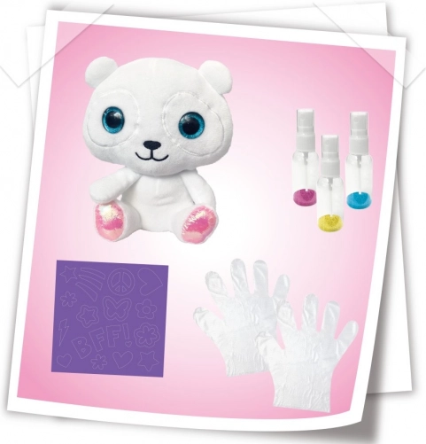 Questo set creativo offre ai bambini la possibilità di trasformare una tenera panda di peluche in una mascotte originale secondo i propri gusti. Grazie ai pratici colori in atomizzatori, l'applicazione è semplice e divertente, mentre gli adesivi donano al giocattolo finito uno stile personale.