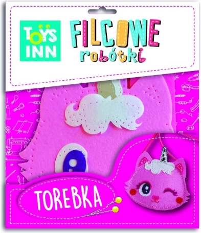 Set creativo per cucire una piccola borsetta rosa con motivo gattino. Sicuro per bambini, include tutto il necessario. Borsetta finita 18 × 12,5 × 4 cm.