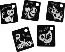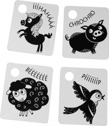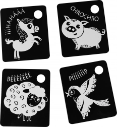 Sostieni lo sviluppo del tuo bimbo con carte contrastate in bianco e nero, confezionate in set da 9 pezzi realizzati con materiali cechi di qualità. Ogni cartoncino ha un foro per l’appensione e la confezione include un anello di plastica per un facile collegamento. Le carte stimolano la vista, sviluppano la motricità fine e la naturale curiosità dei bambini, inclusa la scoperta degli animaletti.