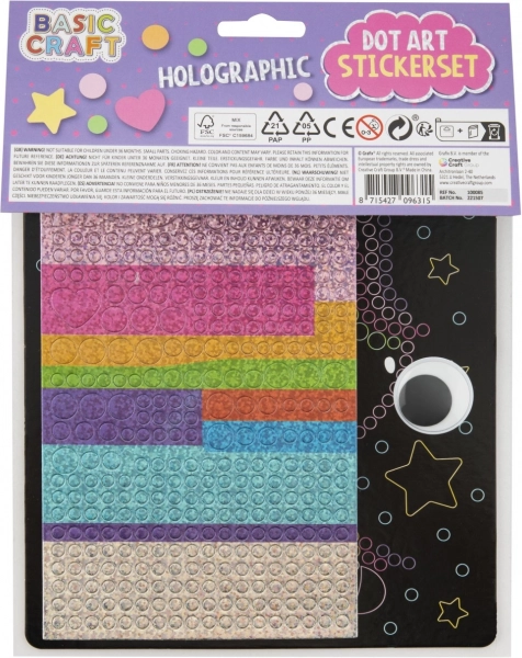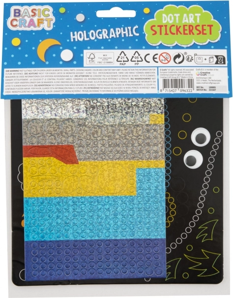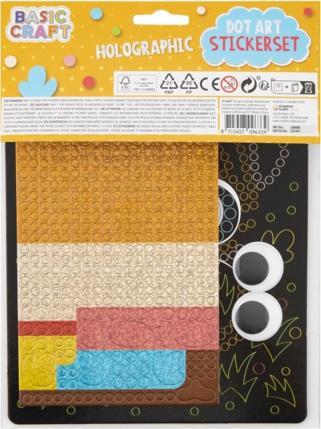 Il contenuto della confezione include un'immagine di base di dimensioni 22 x 18 cm, un foglio di adesivi in schiuma e occhi. Dona un tocco personale alle tue creazioni decorandole secondo la tua fantasia.