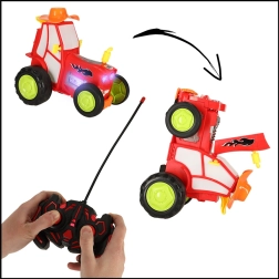 Divertente trattore RC saltellante nel vivace colore rosso offre ai bambini ore di gioia. Invece della guida normale per lo più salta e balla, accompagnato da musica allegra ed effetti luminosi. Grazie al semplice controllo con telecomando diventa rapidamente il gioco preferito, che sviluppa motricità fine e coordinazione. L’alimentazione è garantita da una batteria ricaricabile con cavo USB incluso.