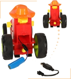 Il trattore saltellante è realizzato in plastica resistente, adatta al gioco quotidiano. La batteria ricaricabile da 3,7 V fa risparmiare sull’acquisto di pile e si ricarica facilmente tramite cavo USB (incluso). Il giocattolo favorisce lo sviluppo delle abilità manuali e può essere un ottimo inizio nel mondo dei modelli RC.