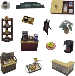 Dal macinacaffè e dalla vetrina con prodotti da forno fino ai vassoi, alle bevande e alle decorazioni – ogni dettaglio aumenta la fedeltà del tuo modello.