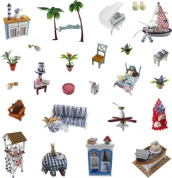 Inclusi pezzi in miniatura di mobili e decorazioni – dall’amaca e il pianoforte alle piante e alle lampadine. Tutto per un interno realistico e accogliente.