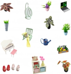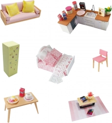 L'arredamento include pezzi di mobili in miniatura che conferiscono un aspetto realistico alla casa.