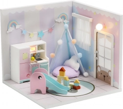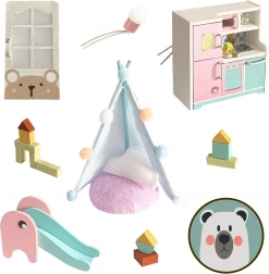 Costruisci la tua camera dei bambini con mini cucina, scivolo e blocchi. Questa miniatura è ideale per sviluppare l'immaginazione e il pensiero creativo dei bambini.