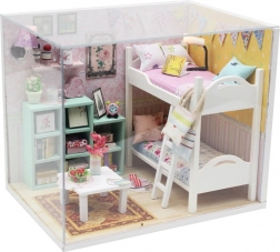 Scopri il fascino delle miniature con il creativo kit Cherylin. Questo set dettagliato offre una accogliente stanza con letto a castello, libreria e accessori, che potrai costruire, incollare e decorare da te. Inclusi illuminazione LED, plexiglass protettivo e istruzioni dettagliate. Una scelta perfetta per rilassarsi e sviluppare motricità, immaginazione e pazienza.
