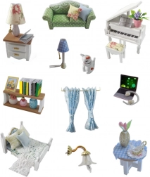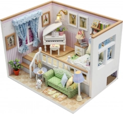 Crea il tuo interno in miniatura ricco di dettagli realistici: un comodo divano con cuscini, un elegante pianoforte, un letto con biancheria, lampade, mensole e delicate decorazioni. L’illuminazione LED integrata dona un’atmosfera accogliente alla scena e trasforma la tua creazione in un’originale decorazione per mensola o scrivania.