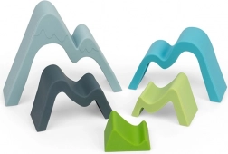 Cinque pezzi sagomati a forma di montagna possono essere impilati, annidati e combinati all’infinito. I bambini sviluppano così fantasia e motricità fine.