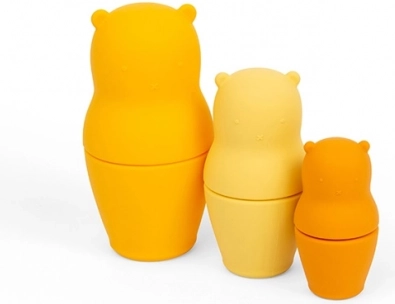 I teneri orsetti in silicone a matrioska uniscono un gioco evolutivo divertente e un pratico massaggiagengive in uno. Sono morbidi e flessibili, realizzati in silicone alimentare 100%, atossico, facile da pulire e resistente a batteri e macchie. Ideali per bambini da 1 anno e una bellissima decorazione per la cameretta.