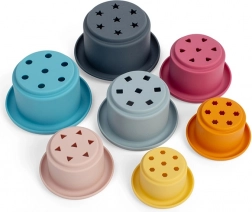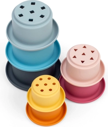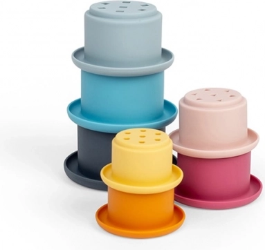 Il silicone 100% senza plastica è morbido per le mani dei bambini e al tempo stesso molto resistente alle temperature e alle macchie. Facile da mantenere: basta acqua calda e sapone delicato oppure la lavastoviglie. Il gioco con i bicchierini favorisce abilità motorie, percezione sensoriale, equilibrio e le prime capacità logiche.