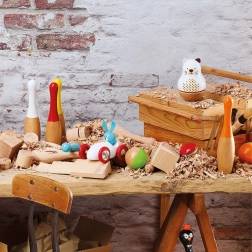 - Set completo: 6 birilli + 2 palle in legno per giocare subito