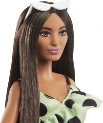 Scoprite la varietà della collezione Barbie Fashionistas, che ispira i bambini a esprimere la propria personalità attraverso lo stile. Questa bambola, con un tipo di corpo originale, lunghi capelli castani e una tuta color menta a pois dal carattere deciso, ha un look di tendenza ed è pronta per ogni avventura. Lo stile è completato da occhiali bianchi e scarpe con plateau, che offrono infinite possibilità di abbinamento.