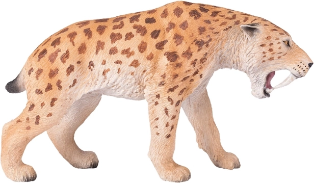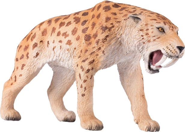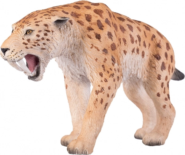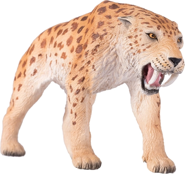 Questa figura cattura fedelmente le caratteristiche realistiche della tigre dai denti a sciabola, inclusi i suoi caratteristici canini lunghi.