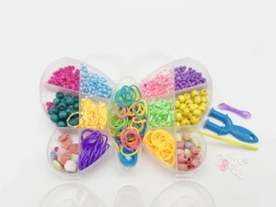 - Confezione completa – elastici, perline, telaio, uncinetto e ganci.