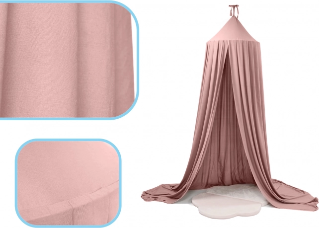 Il baldacchino rosa trasforma ogni cameretta in un luogo da fiaba. Il tessuto leggero e arioso avvolge delicatamente lo spazio sopra il lettino o la zona giochi, creando privacy per il riposo, la lettura e i giochi di fantasia. La tonalità di rosa neutra si combina facilmente con la maggior parte delle decorazioni.