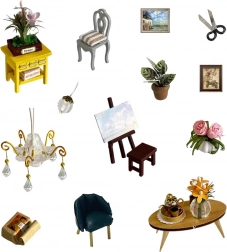 Sono inclusi mobili in miniatura e decorazioni, facili da assemblare e disporre. Ogni dettaglio esalta l'aspetto realistico del modello finito.