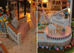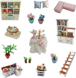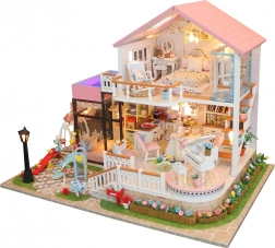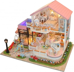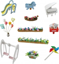 Questa elegante miniatura di casetta offre interni riccamente arredati – camera da letto, zona soggiorno e piccola cucina – e un’area esterna con parco giochi. Grazie ai dettagli realizzati con precisione, ai mobili e agli accessori, creerai una scena suggestiva da esporre e per il gioco immaginativo. L’illuminazione LED installata dona un’atmosfera accogliente alle serate (2× AAA non incluse).