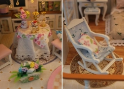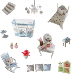 Villa a due piani con camera da letto, soggiorno e cucina in delicate tonalità, affascina per la ricca dotazione e gli accessori realistici.