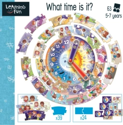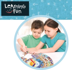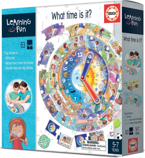 Educa Learning is Fun aiuta i bambini a acquisire abilità quotidiane legate all'uso dell'orologio e li introduce alle attività durante la giornata. Questo gioco include un grande puzzle circolare con 39 pezzi e un orologio con lancette, che permette di integrare ragionamenti logici e la motricità fine.