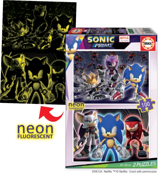 Divertiti con due puzzle neon Sonic Prime di EDUCA, che brillano al buio grazie a uno speciale strato fluorescente. Ogni puzzle ha 100 pezzi e dimensioni 40 x 28 cm.
