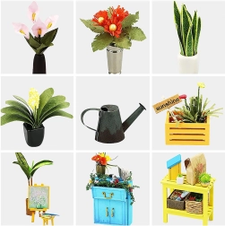 Scopri il fascino delle miniature con il modello Robotime Mini Serra. Nella scatola troverai pezzi pretagliati in compensato, stampe su carta, elementi in tessuto e metallo, che una volta dipinti e incollati daranno vita a una suggestiva serra piena di piantine e accessori da giardino. L’illuminazione LED dona al modello finito un’atmosfera calda e accogliente.