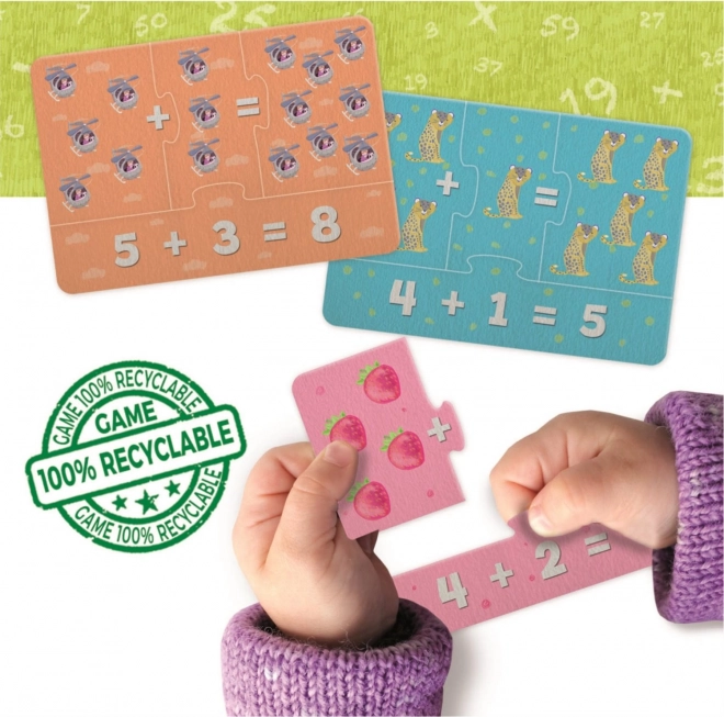 Scopri un modo divertente per entrare nel mondo dei numeri con la linea EDUCA Learning is Fun. Questo gioco educativo e puzzle insegna ai bambini a riconoscere i numeri, usare i simboli matematici e allenare le basi di addizione e sottrazione. Ogni esercizio è composto da 4 pezzi di puzzle, che sviluppano motricità fine, pensiero logico e pazienza. Realizzato con materiali 100% riciclabili.