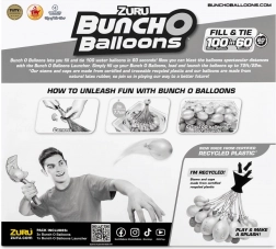 I palloncini d'acqua Bunch O Balloons utilizzano la tecnologia O-Ring e offrono un riempimento rapido. Basta collegarli al rubinetto o al tubo da giardino e in meno di 60 secondi avrete pronti 100 bombe d'acqua! Potete lanciarli ai vostri amici o usare la lancia aerodinamica, che li spara fino a un'altezza di 22 metri!