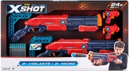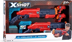 Lancio X-Shot Combo Pack offre il doppio del divertimento! Il pacchetto contiene due set di pistole sparafreccette per avventure adrenaliniche con gli amici. Ogni set combina il Micro Excel Blaster e il Vigilante Excel Blaster con una portata fino a 27 metri.