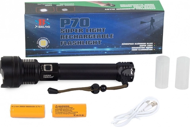 - torcia P516-P70, 2× batterie 26650, cavo USB, confezione originale