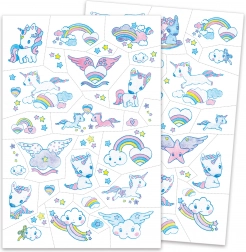 I tatuaggi temporanei DJECO a tema unicorni sono la scelta ideale per feste dei bambini, carnevale e il divertimento di tutti i giorni. I bambini possono decorare mani, viso e gambe con immagini allegre e delicate, che sono state dermatologicamente testate per un uso sicuro.