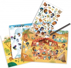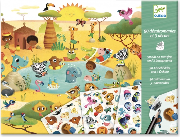 Con questo set creativo DJECO i bambini creano con facilità mondi colorati: il gelido Polo Nord, l’ardente deserto e la selvaggia savana. Il trasferimento dei soggetti è semplice: posiziona l’immagine sullo sfondo e passaci sopra delicatamente con la matita. Il motivo si imprime fedelmente esattamente dove lo desideri.