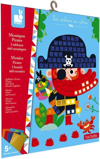 Mosaico per tutti i piccoli pirati. Un bellissimo mosaico con immagini coloratissime contiene 6 fogli con adesivi a mosaico scintillanti e colorati. Il mosaico supporta lo sviluppo tattile del bambino. Nella confezione ci sono 3 immagini con pirati (dimensioni 25 x 21 cm). Adatto ai bambini dai 5 anni. Il set Janod Atelier per creare sostiene abilità e immaginazione nei bambini. I giochi creativi per bambini non occupano molto spazio, sono adatti sia in viaggio che a casa, in salute e in malattia, e intrattengono i bambini per ore. Creare con diverse tecniche favorisce attenzione e concentrazione, l’esplorazione naturale e le capacità artistiche.