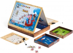 Partite per una spedizione pirata e cercate di scoprire dove l'avversario ha nascosto le sue navi. Il gioco magnetico navi dei pirati JANOD porta il classico principio della battaglia navale in una versione moderna e resistente. Grazie agli elementi magnetici, tutto rimane al suo posto, rendendo il gioco ideale sia a casa che in viaggio.