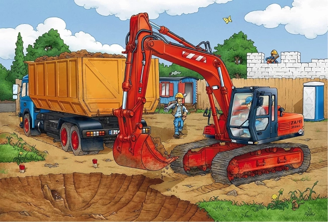 Immergiti nell'affascinante ambiente del cantiere con il SCHMIDT Puzzle Nel cantiere. Ogni puzzle misura 26,3 x 17,8 cm e presenta scene di costruzione dinamiche.