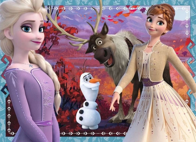Rivivi la magia del film Frozen 2 con questo bellissimo puzzle, che contiene quattro diverse immagini con i personaggi preferiti. Il puzzle è progettato per favorire il divertimento e lo sviluppo delle abilità motorie fini nei bambini. La dimensione del puzzle completato è di circa 36 x 26 cm, che è la dimensione ideale per le piccole dita.