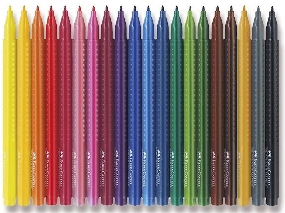 Il set di pennarelli Faber-Castell Grip è ideale per scolari, bambini creativi e adulti. Grazie alla forma triangolare ergonomica e alla caratteristica zona GRIP con piccoli punti antiscivolo, i pennarelli si impugnano comodamente e guidano la mano in modo naturale. L’inchiostro a base d’acqua è saturo, brillante e facilmente lavabile dalla maggior parte dei tessuti comuni.