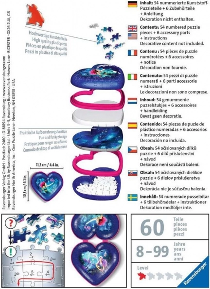 Crea un originale portagioie 3D a forma di cuore con il magico tema della sirena. I pezzi curvi e flessibili si incastrano perfettamente e, grazie alla qualità della plastica rigida, mantengono la forma senza bisogno di colla.