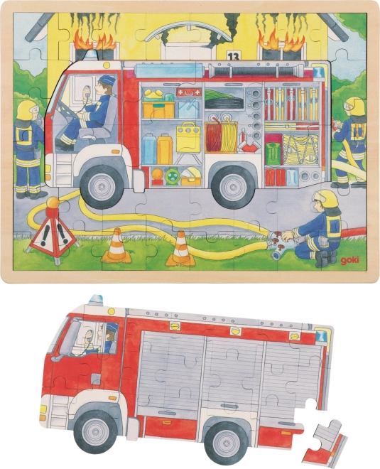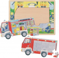 Questo puzzle in legno di alta qualità del marchio GOKI presenta una scena realistica di intervento dei pompieri su due livelli. Grazie alla tavoletta di base con bordo rialzato, il puzzle si compone comodamente e si ripone con facilità. La struttura a strati permette ai bambini di sbirciare all’interno del veicolo dei vigili del fuoco e scoprire quali strumenti e dotazioni utilizzano.