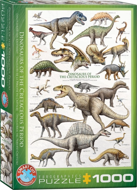 Immergiti nel mondo affascinante dei dinosauri con il puzzle Mondo dei Dinosauri: Cretaceo del marchio EUROGRAPHICS, che offre forme uniche di pezzi per un montaggio più impegnativo.