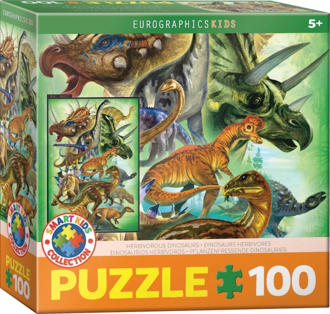 Divertente puzzle per bambini EUROGRAPHICS con tema dei dinosauri erbivori offre un passatempo intelligente per i piccoli amanti della preistoria. Contiene 100 pezzi, è adatto dai 5 anni, una volta composto misura 33 × 48,3 cm ed è riposto in una scatola quadrata compatta.