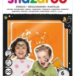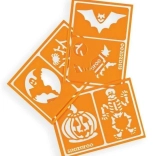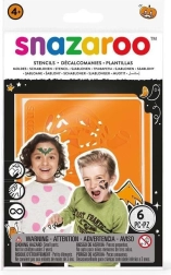 Set di sei stencil SNAZAROO per un trucco viso e corpo facile e veloce. Motivi a tema Halloween, supporto autoadesivo per stabilità, materiale flessibile per aderire alle curve e riutilizzo grazie alla finitura lavabile.