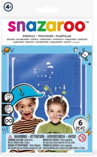 Scopri il set avventura di stencil SNAZAROO con temi di pirati, nativi americani e spazio, che porterà il tuo face painting a un nuovo livello. Gli stencil hanno un retro adesivo che resta fermo in posizione, e il loro materiale flessibile si adatta alle curve del viso e delle mani.