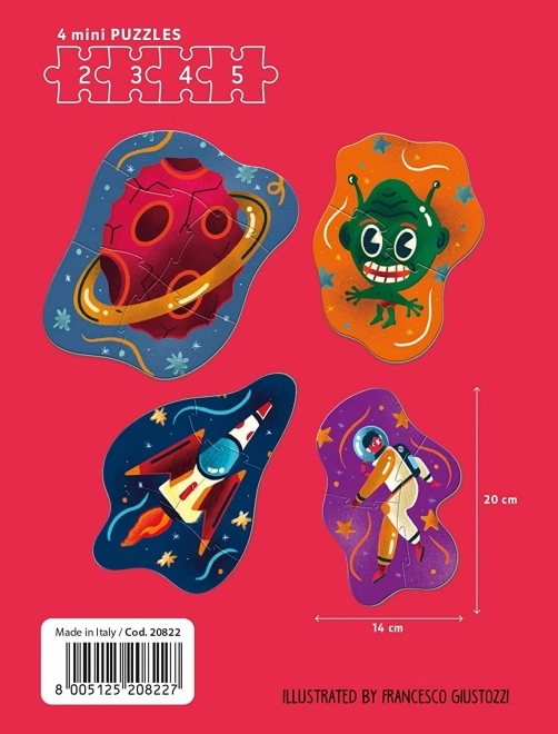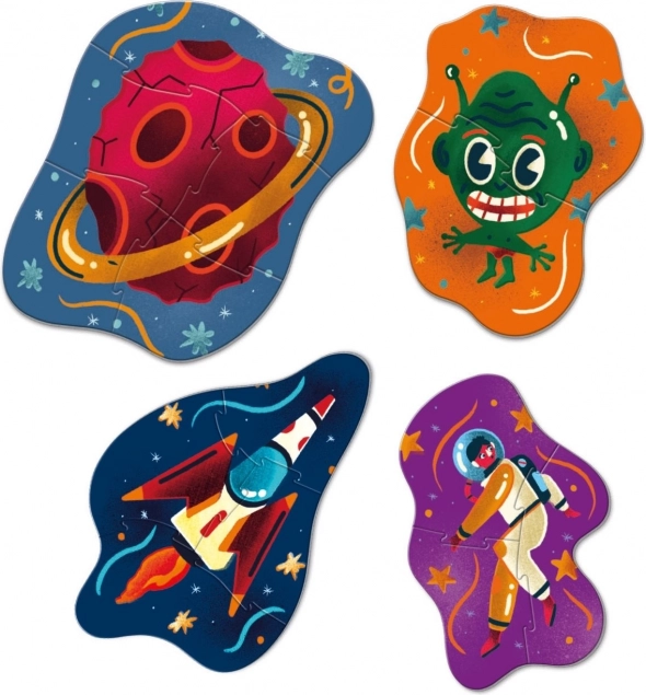 Ogni puzzle vanta un design unico che include uno shuttle, un alieno, un pianeta e un astronauta, stimolando l'immaginazione e la curiosità dei bambini sull'universo.