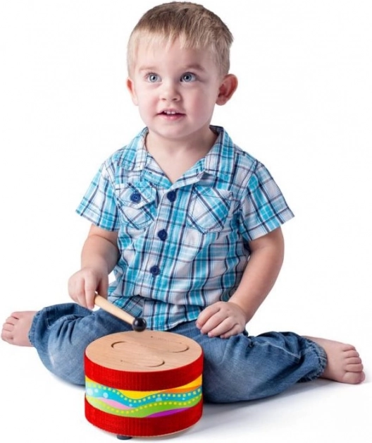 Un colorato tamburo per bambini in legno di alta qualità che farà felici tutti i piccoli musicisti. Sviluppa il ritmo, la coordinazione mano-orecchio e favorisce la creatività. Include una bacchetta di legno, il tamburo ha un diametro di 18 cm e tre piedini in gomma per una maggiore stabilità. Adatto ai bambini da 3 anni.