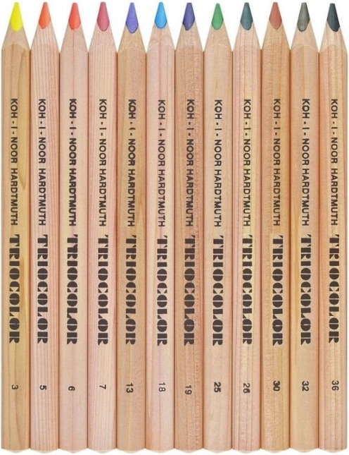 Scopri i pastelli triangolari di qualità KOH-I-NOOR Triocolor in set da 12 colori, ideali per bambini e adulti creativi. Grazie alla forma ergonomica triangolare offrono una presa confortevole, il legno naturale assicura un’impugnatura piacevole senza scivolare e il nucleo colorato spesso crea tratti intensi e luminosi. I pastelli sono resistenti alla pressione più forte e sono perfetti sia per i primi disegni sia per l’educazione artistica a scuola.