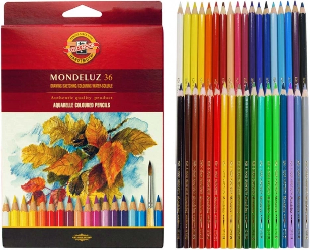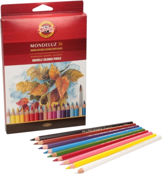 Il set di matite acquerellabili KOH-I-NOOR MONDELUZ da 36 pezzi è ideale per disegni dettagliati e pittura ad acqua. I pigmenti si distinguono per l’eccellente resistenza alla luce e la purezza dei colori, così le vostre opere rimangono brillanti e vivide a lungo. A contatto con pennello e acqua, la traccia si sfuma magnificamente consentendo effetti tipici dell’acquerello.